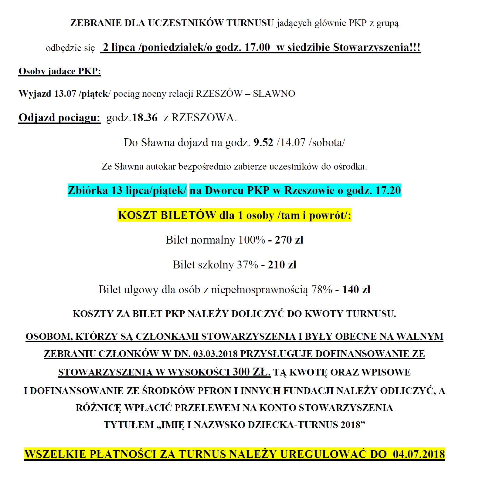 ZEBRANIE DLA UCZESTNIKÓW TURNUSU jadących głównie PKP z grupą odbędzie się 2 lipca /poniedziałek/o godz. 17.00 w siedzibie Stowarzyszenia!!!